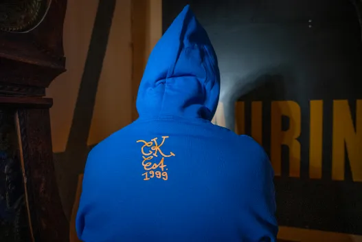 Pulli: Gildan Material: Je 50% Baumwolle & Polyester Farbe Pulli: Royal Blue Farbe Druck: Orange